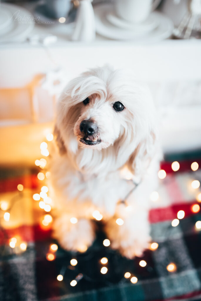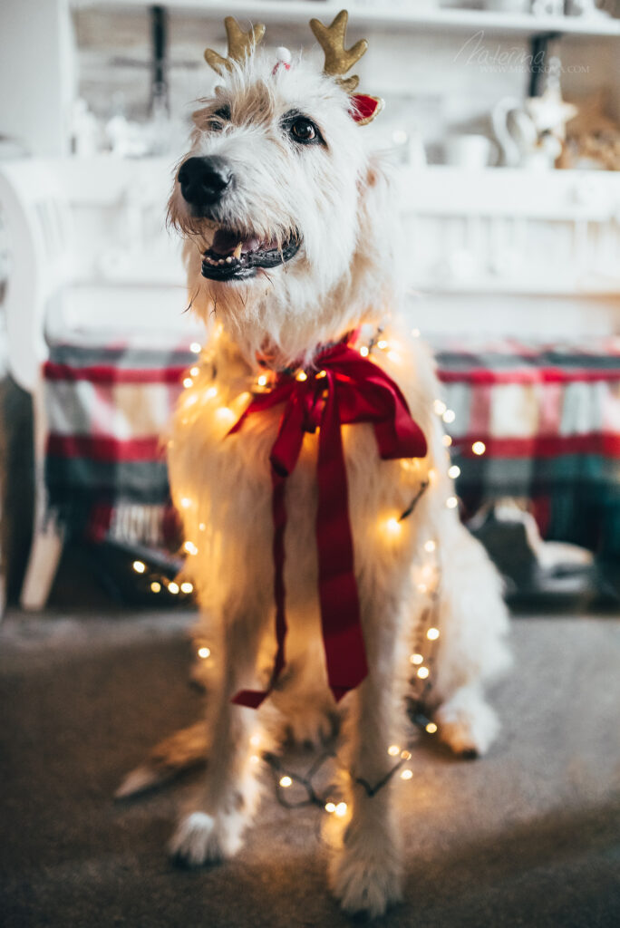 Nejhorší bylo vecpat do kuchyně, kde probíhalo focení, i vlkodavku Amálku a pak ji ještě vmáčknout do fotky, ale nakonec se nějak povedlo a vánoční fotky jsou na světě :)